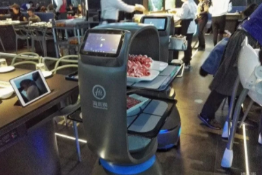 在餐饮行业,许多餐饮服务类的机器人也会不断地进入其中。如不久之前海底捞推出的智慧餐厅,食材的加工烹饪都由机器臂完成,给客人送餐由自主导航的送餐机器人完成。服务行业对于自动化的柔性需求的递增会促进柔性自动化技术在服务业的发展。